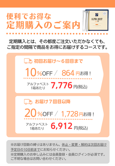 - ・継続回数により商品価格に以下の割引が適用されます。