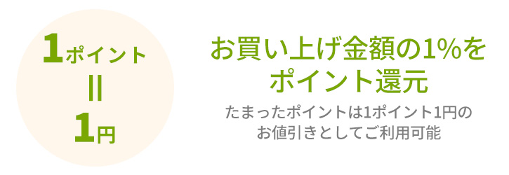お支払い金額に応じて1%分のポイントが発行されます(一部キャンペーンは除く)。