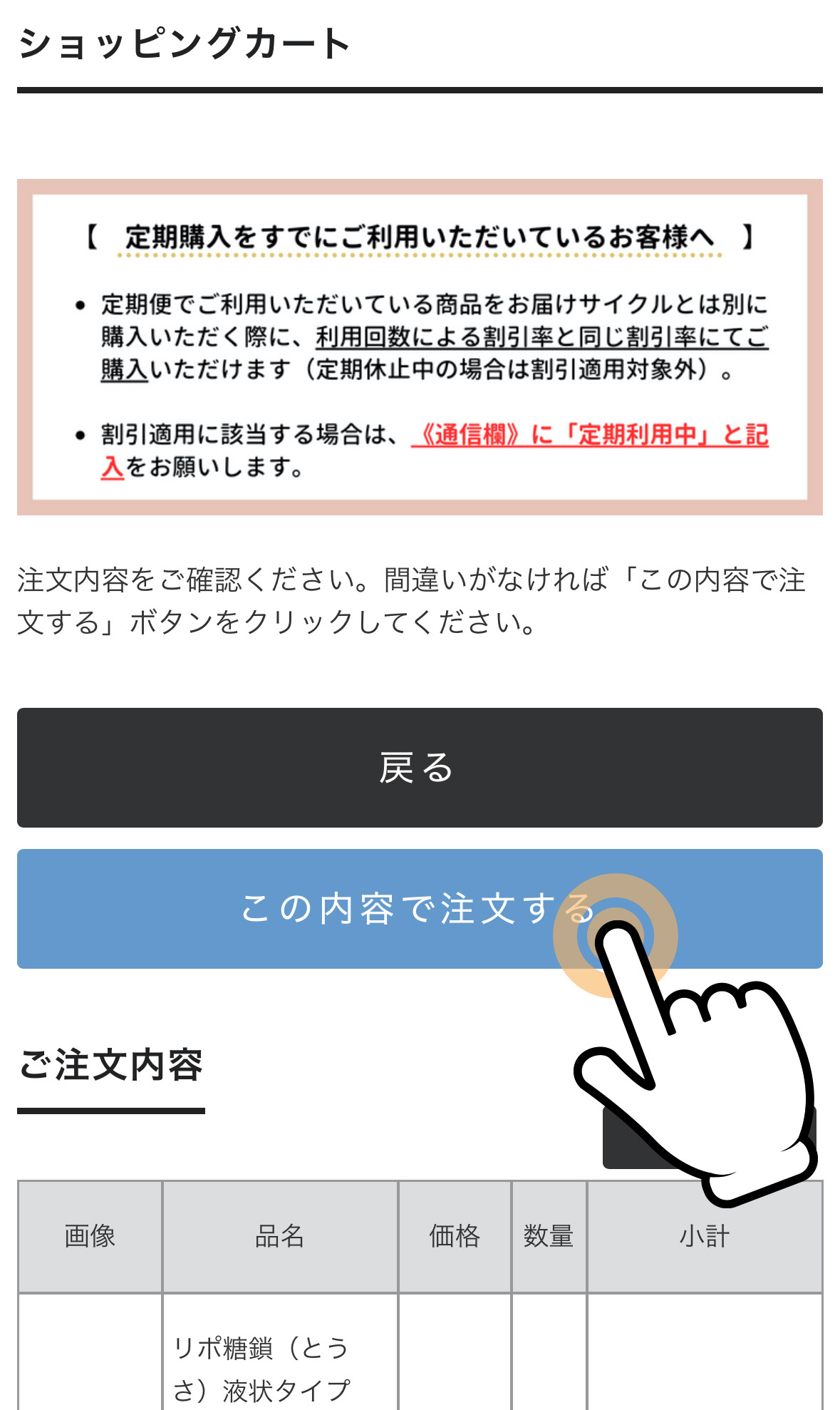 ご注文内容にお間違えがなければ、[この内容で注文する]をクリックして注文完了です。