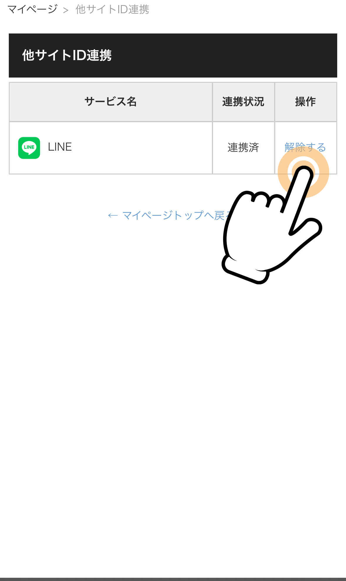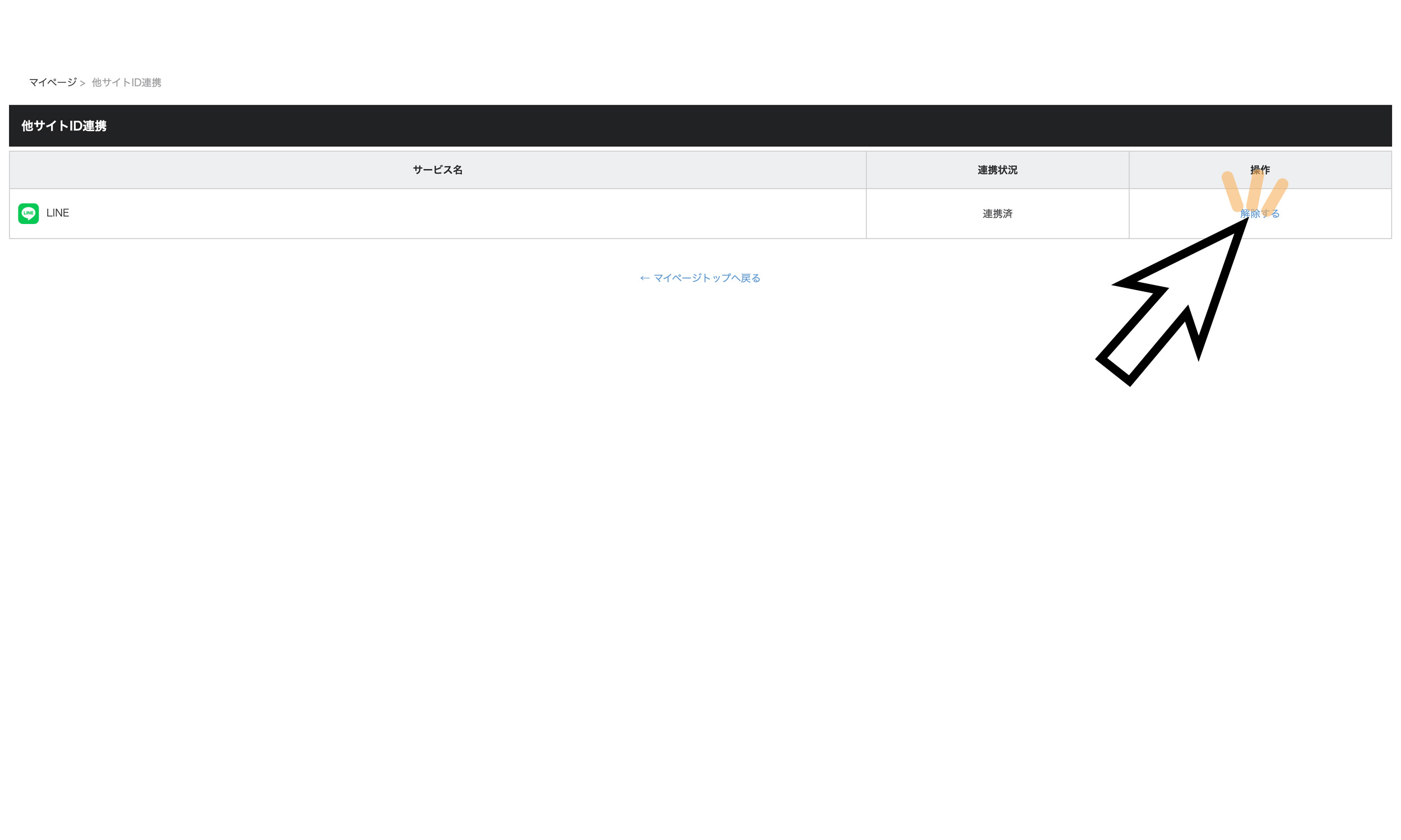 また、各サイトID連携を解除したい場合は、マイページ内にある「他サイトとのID連携」にて【解除する】ボタンをクリックしてしてください。