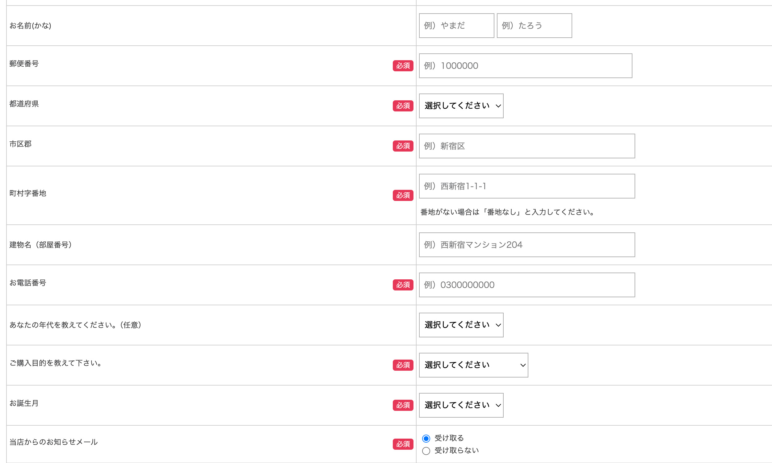 同一住所で複数回ご登録されてしまいますと、ポイントが正しく表示されなかったり、メルマガやDMを重複してお届けしてしまう場合がございます。あらかじめご注意くださいませ。