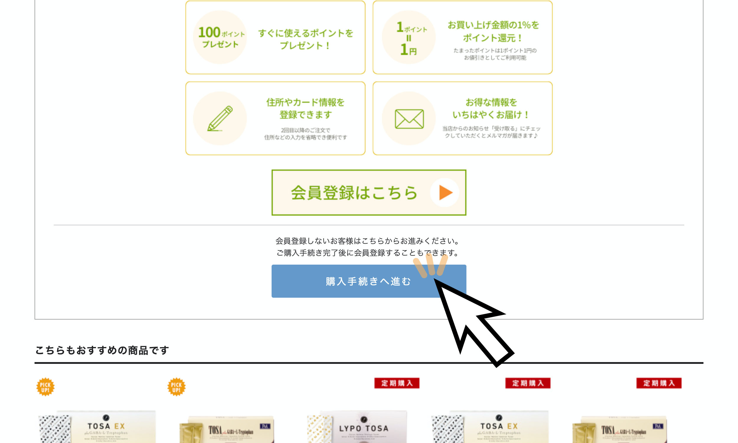 お支払いに進む会員登録済みのお客様は[会員のお客様]よりログインしてください。会員登録済みでないお客様は[購入手続きへ進む]へお進みください。
